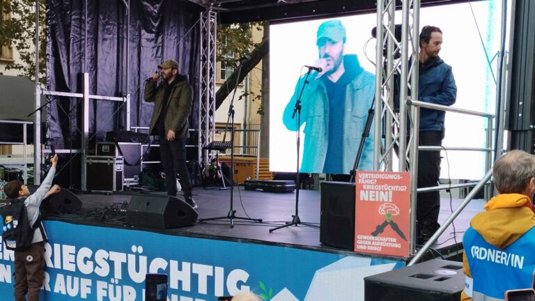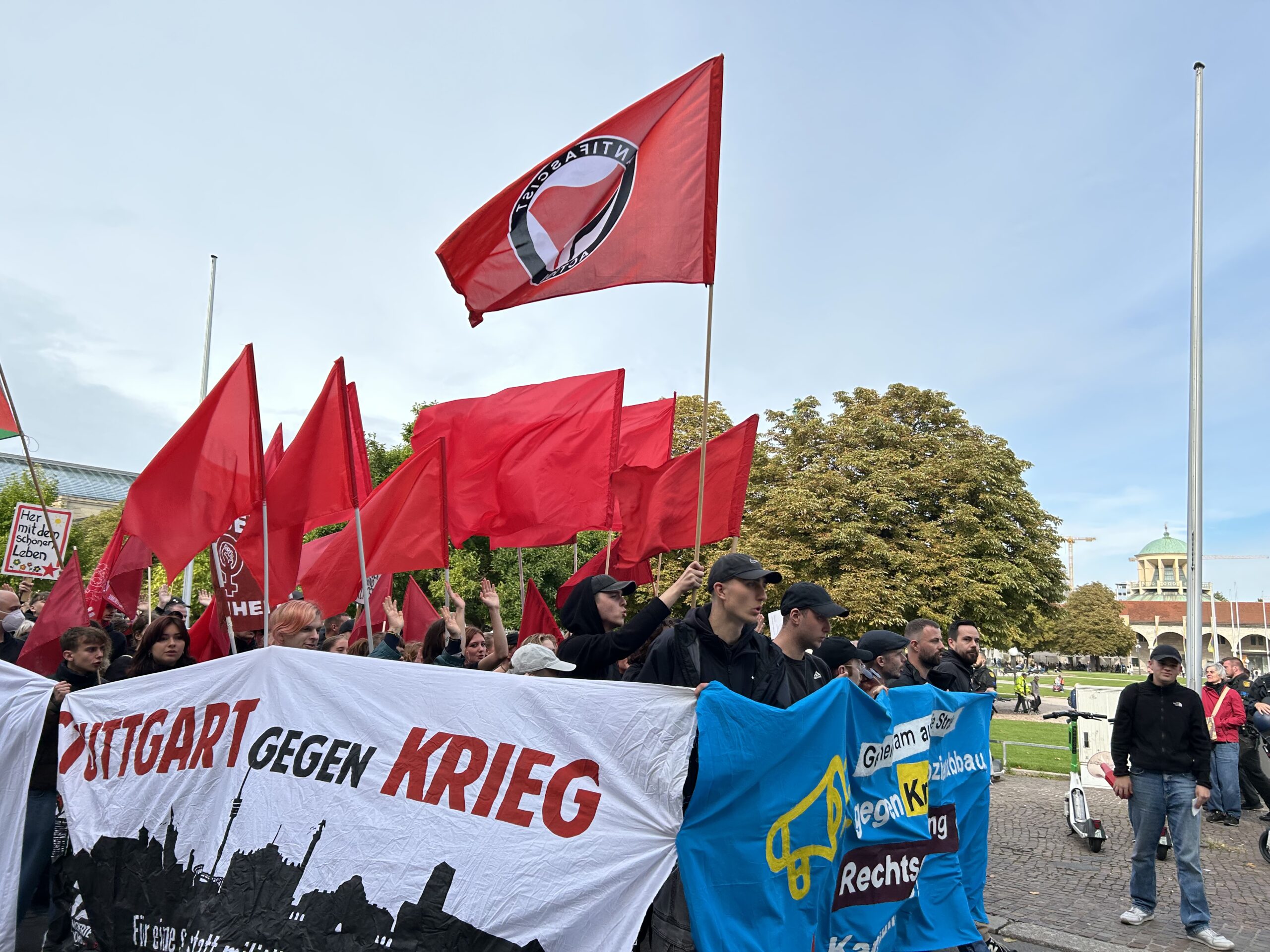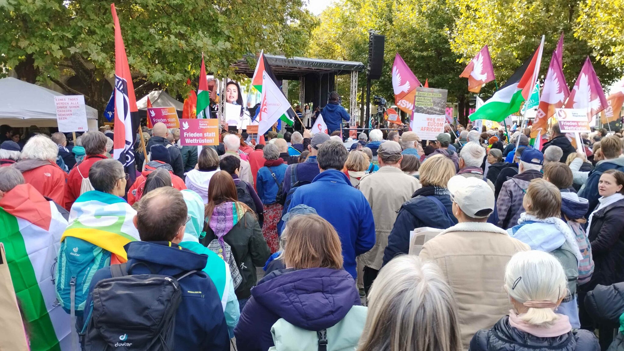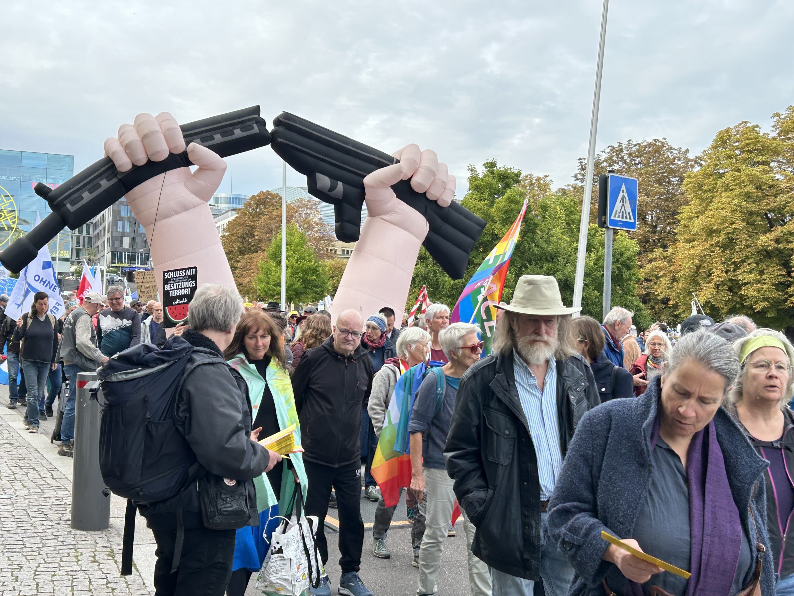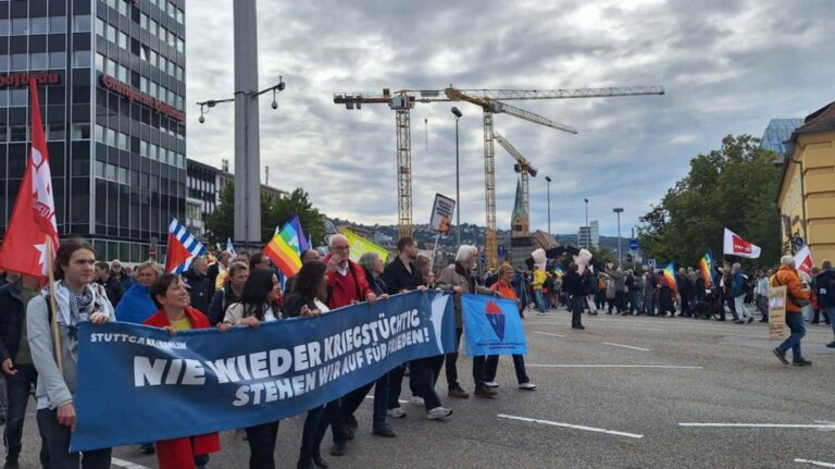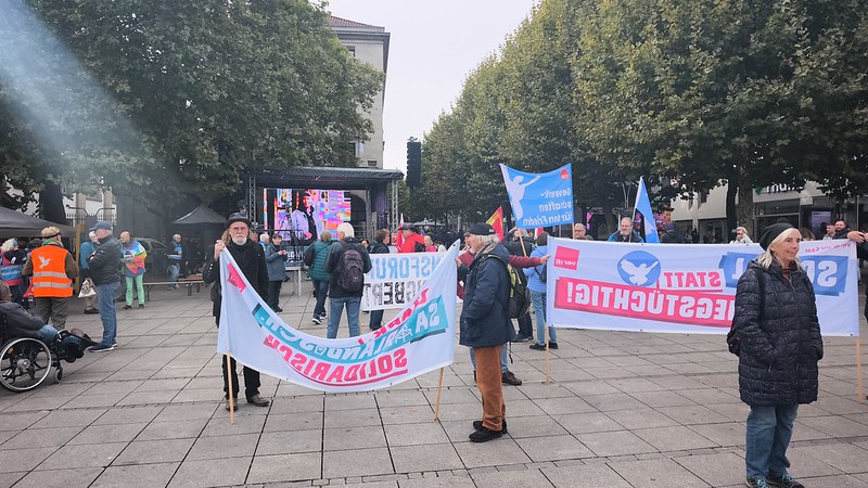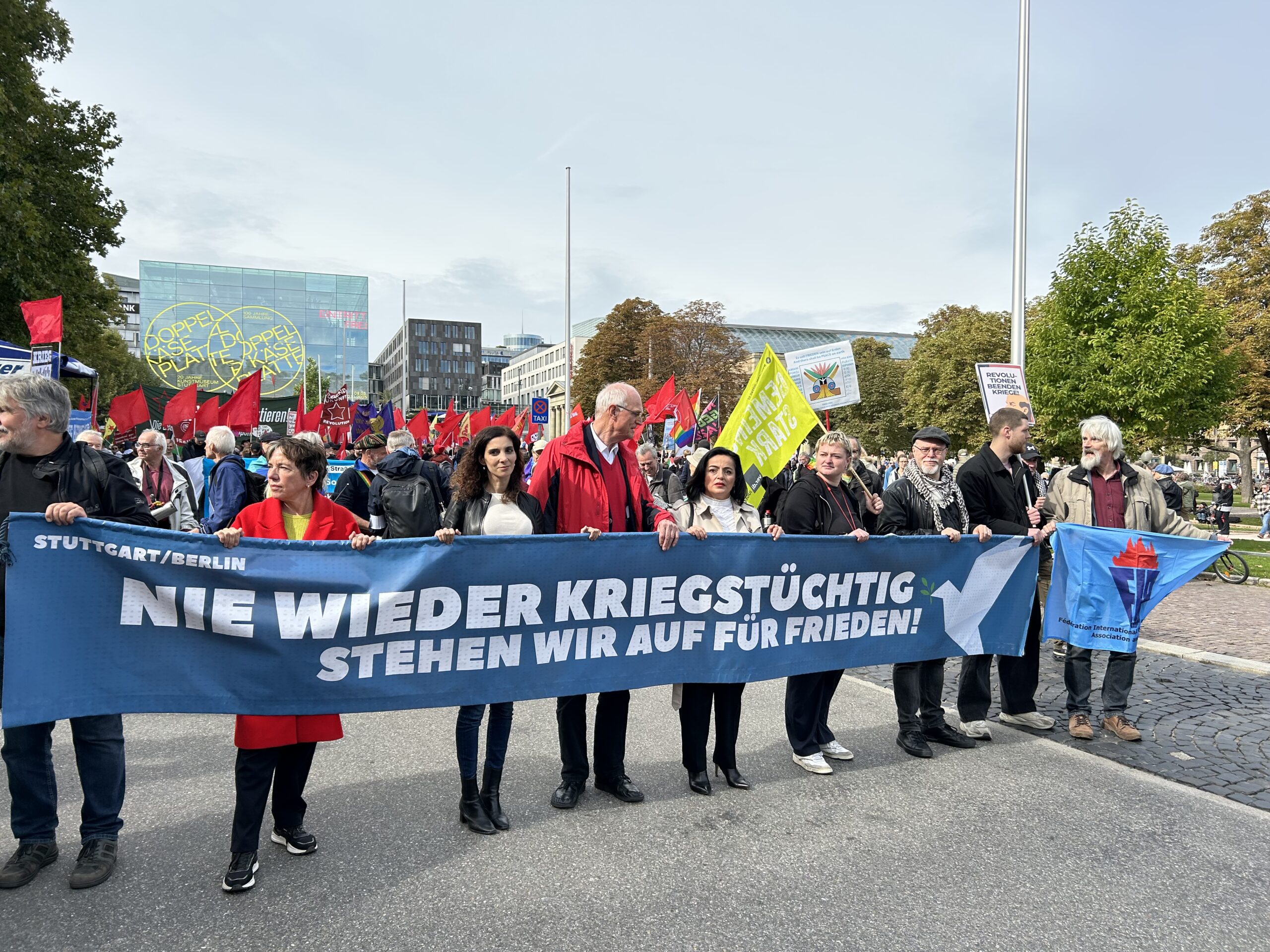 Hier einige Bilder von Friedensaktiven von der Demonstration am 3. Oktober in Stuttgart. Um dir ein Bild herunter zu laden, klicke bitte einfach auf das entsprechende Foto.